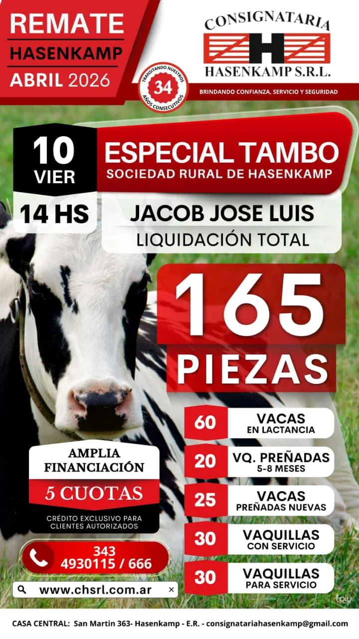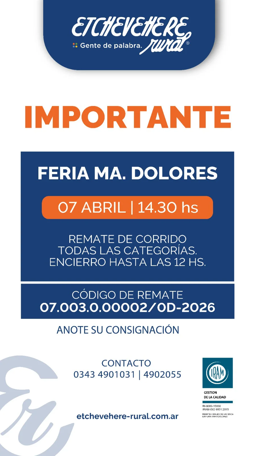 Ganaderia10/04/2026La actividad ganadera se programó para el próximo lunes 13 de abril en las instalaciones de su predio ferial y un evento que genera gran expectativa por la calidad de la hacienda que se viene consignando en las últimas semanas.