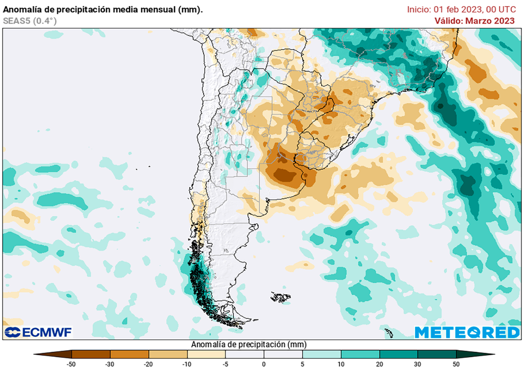 Por lo tanto, marzo se muestra algo más prometedor para la región central del país, pero siempre manteniéndose con lluvias inferiores a los promedios. Cabe destacar que primero se observaría un aumento en la frecuencia de los eventos de lluvia, luego en la generalización de los registros y por último en el volumen de las precipitaciones.