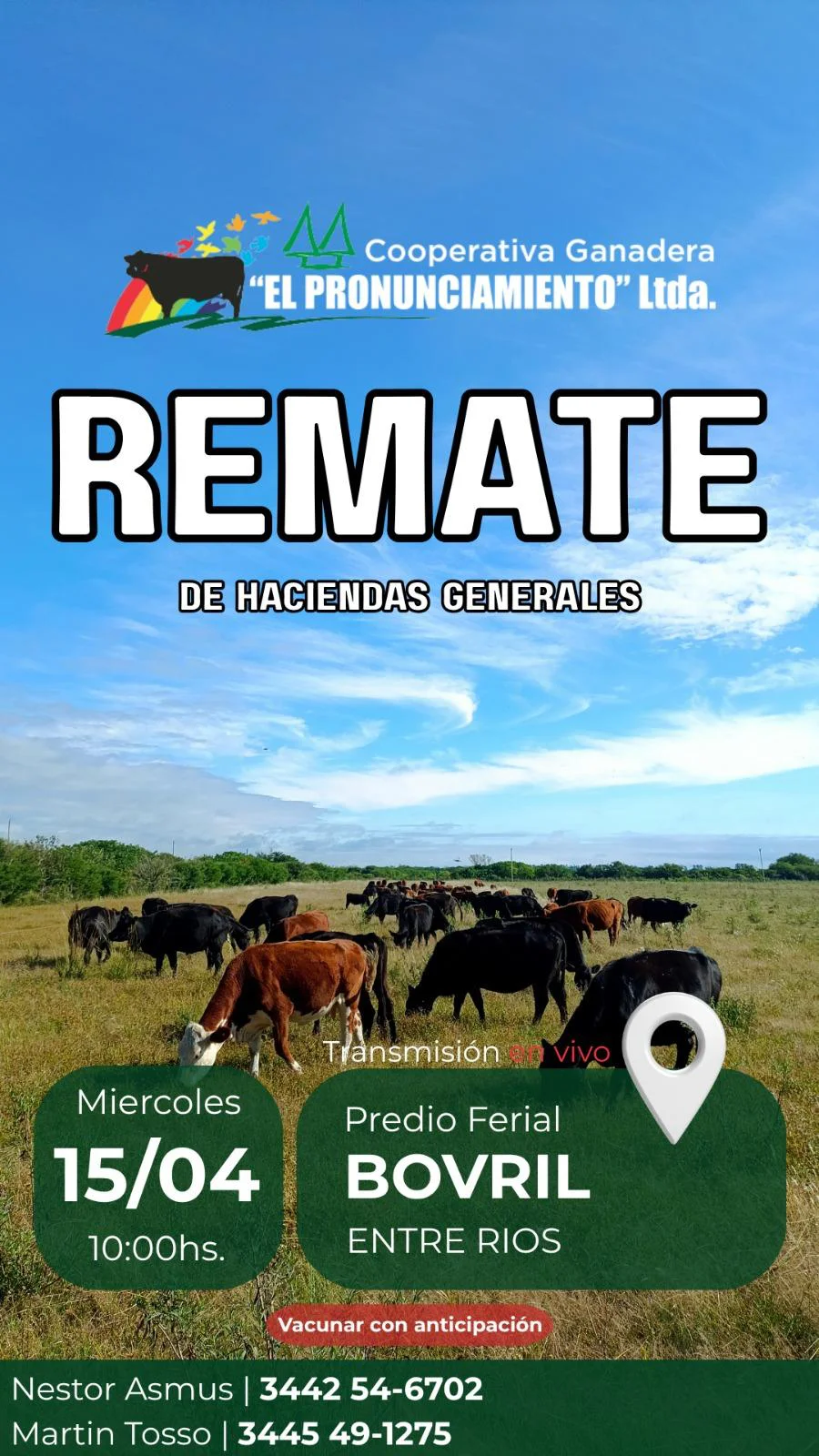 Ganadería en alerta: Cooperativa "El Pronunciamiento" rechaza cambios en la vacunación de aftosa
